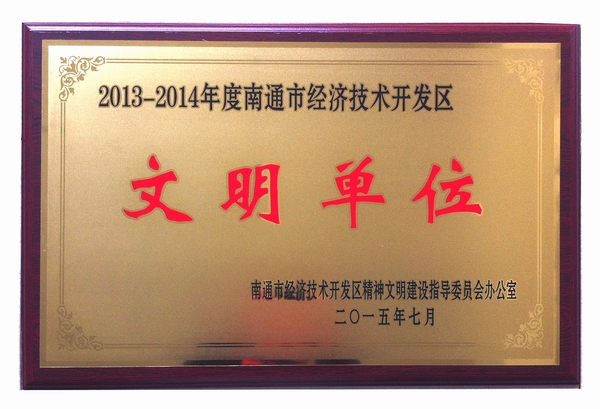2015年度,潤邦股份還獲得了南通經濟技術開發區文明辦頒發的“開發區2013-2014年度文明單位”稱號。