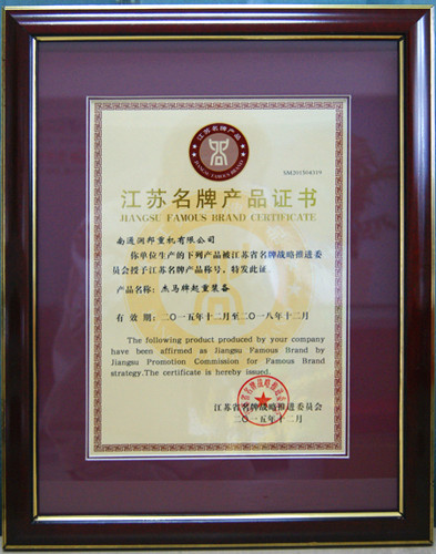 日前,潤邦股份旗下“杰馬”品牌獲得了由江蘇省名牌戰(zhàn)略推進委員會頒發(fā)的“江蘇名牌產(chǎn)品證書”。