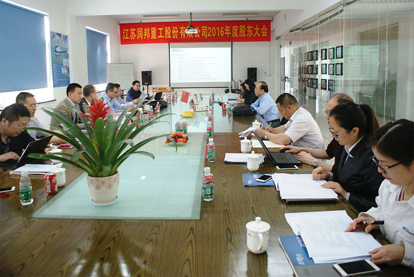 2017年5月12日,江蘇潤(rùn)邦重工股份有限公司召開(kāi)了2016年度股東大會(huì),會(huì)議由公司董事長(zhǎng)吳建先生主持。