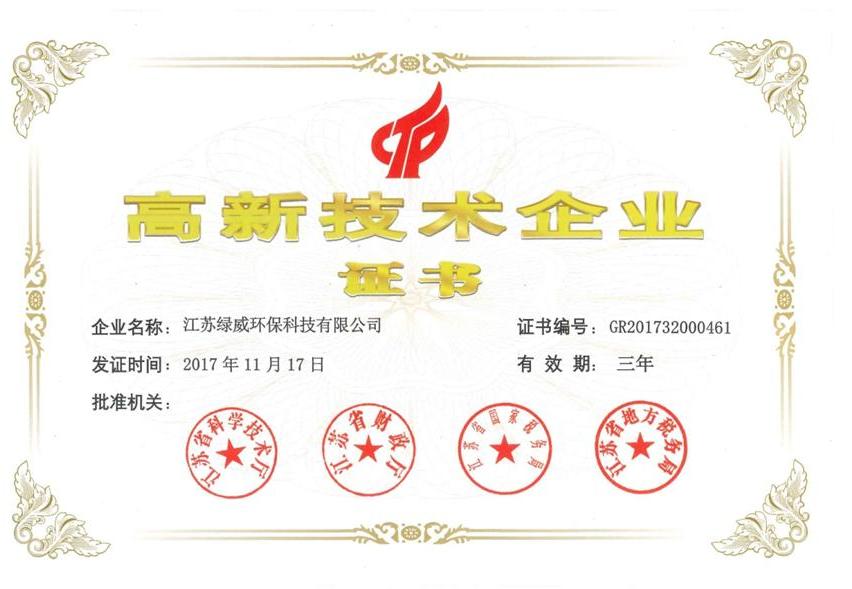 近日,子公司潤邦重機、綠威環保順利通過高新技術企業審核認證,再次獲得由江蘇省科學技術廳、江蘇省財政廳、江蘇省國家稅務局、江蘇省地方稅務局共同批準頒發的高新技術企業證書。潤邦重機、綠威環保分別于2011年、2014年獲得高新技術企業認證,本次順利通過認定,是對潤邦重機、綠威環保多年來堅持自主研發、技術創新、堅持走高新技術發展道路的有力肯定。
