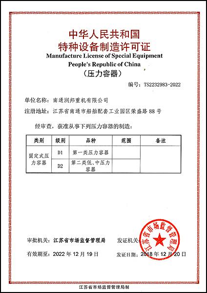 近日,經(jīng)江蘇省特種設(shè)備安全監(jiān)督檢驗(yàn)研究院現(xiàn)場(chǎng)審核和南通市市場(chǎng)監(jiān)督管理局特設(shè)科現(xiàn)場(chǎng)監(jiān)督,潤(rùn)邦重機(jī)順利通過(guò)了壓力容器D1、D2特種設(shè)備制造許可認(rèn)證,進(jìn)一步證明了公司在技術(shù)、生產(chǎn)、資源等方面制度體系健全完善,基礎(chǔ)管理規(guī)范有序。