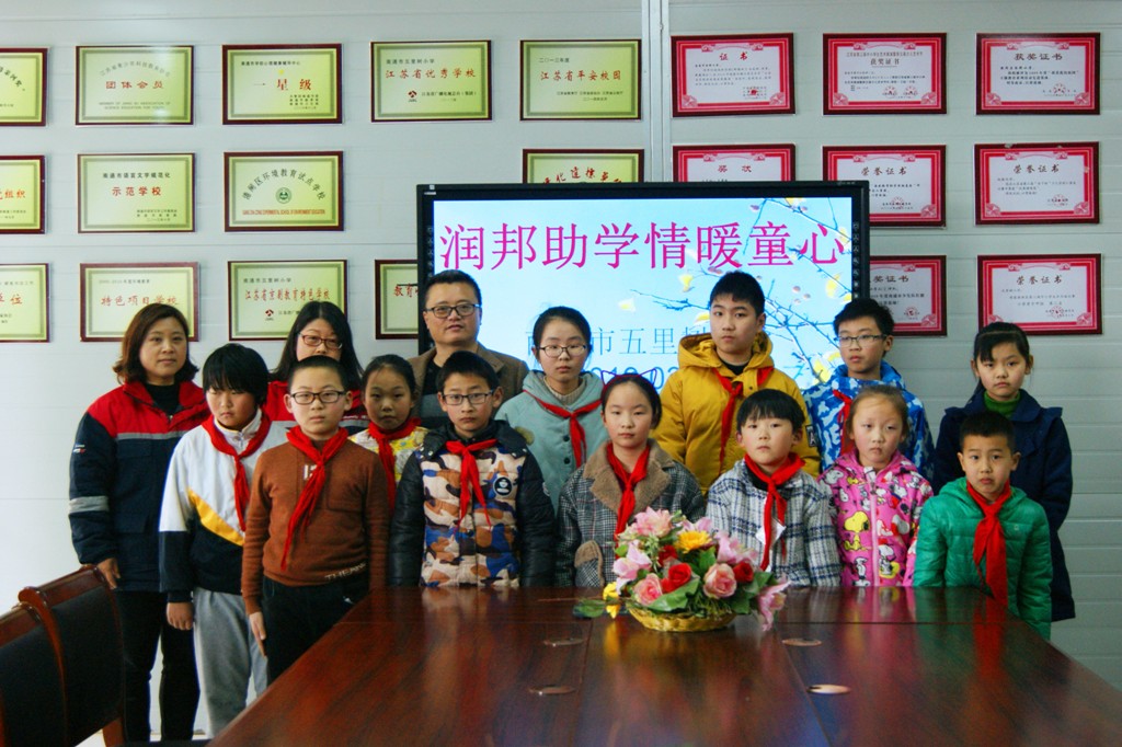 近日,潤邦重機工會主席代表公司來到港閘區陳橋五里樹小學,看望被幫扶的困難學生,并給他們送去善款和問候。在幫扶現場,工會主席通過工匠精神的故事來勉勵孩子們努力學習、自強不息,長大為社會多做貢獻。