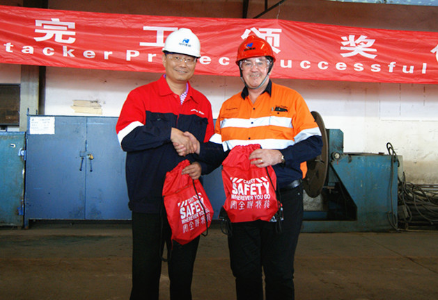 日前,力拓礦業(yè)中國區(qū)采購總經(jīng)理Greg Courts先生率力拓品質(zhì)及采購團(tuán)隊(duì)蒞臨潤邦重機(jī),就公司為力拓打造的“杰馬/GENMA”環(huán)形堆料機(jī)項(xiàng)目表示謝意,并贈送了禮物給項(xiàng)目團(tuán)隊(duì)的每位成員。