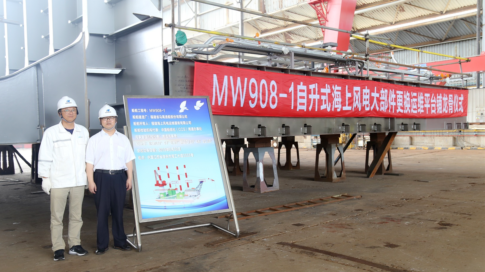 近日,由潤邦海洋承建的 “600T自升式海上風電大部件更換運維平臺”在潤邦海洋2號船臺順利舉行了鋪龍骨儀式。