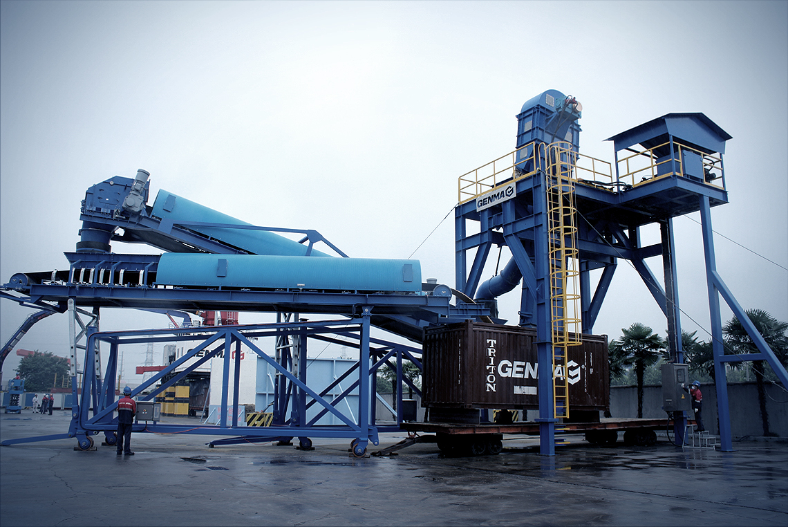GENMA埋刮板卸船機是一款效率極高的卸船設備,效率達到每小時1500t,比傳統抓斗卸船機高70%以上,超高的卸船效率獲得了客戶的青睞。
