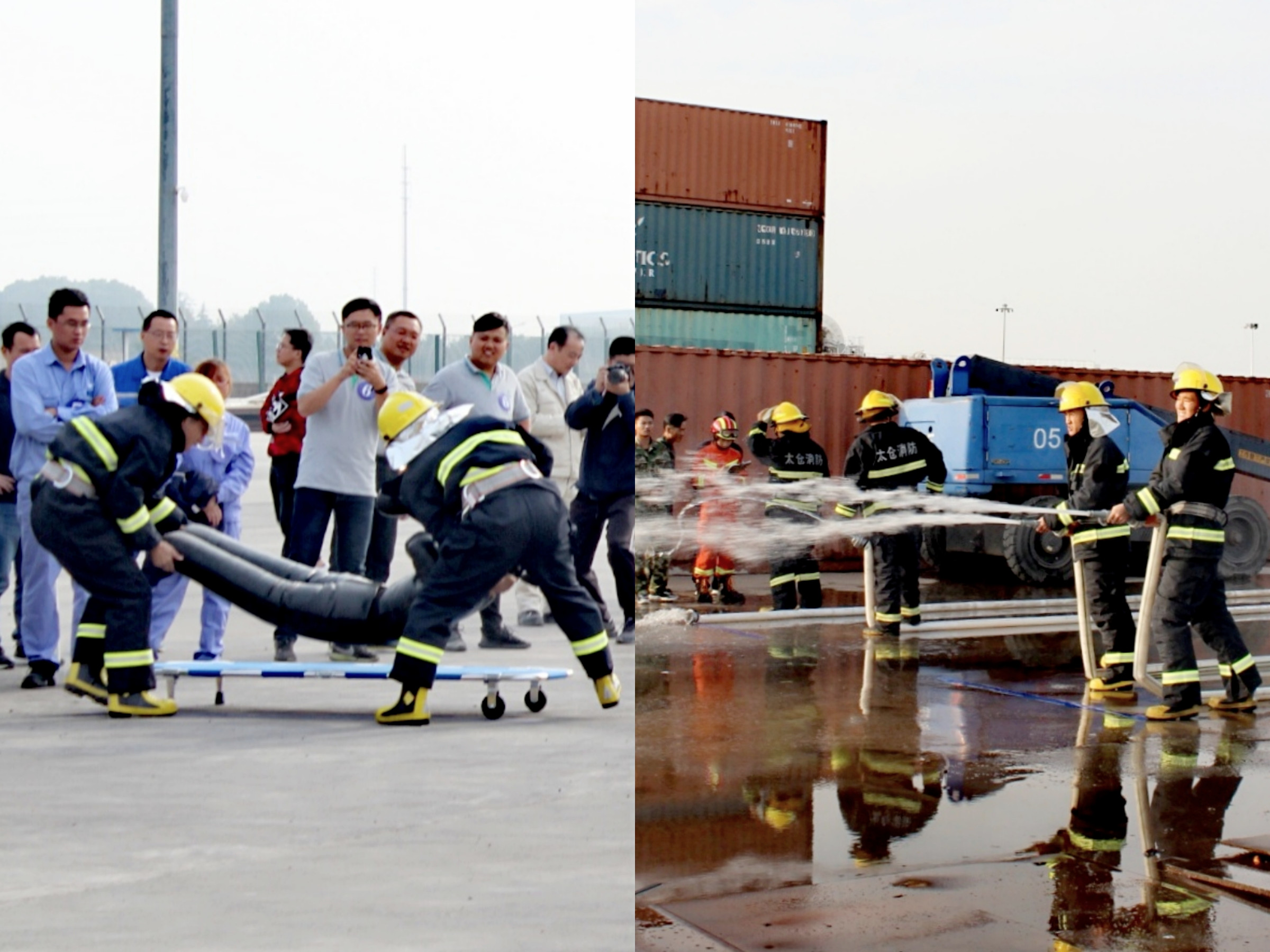 在消防宣傳月啟動儀式上太倉市政府副市長馮晉發表致辭、太倉港區管委會副主任陸湘元進行了講話,市領導、港區領導、部分企業家代表上臺舉行了啟動儀式。之后,來自港區的18支隊伍分別進行了男女混合接力干粉滅火器滅油盆火、救助傷員、原地著裝消防手抬泵百米出水操三項技能比拼。最后玖龍紙業(太倉)有限公司獲得一等獎,太倉陽鴻石化有限公司及太倉中集集裝箱制造有限公司獲得二等獎,太倉新太酒精有限公司、太倉萬方國際碼頭有限公司、江蘇長江石油化工有限公司獲得三等獎,潤邦卡哥特科工業有限公司獲優秀組織獎。
