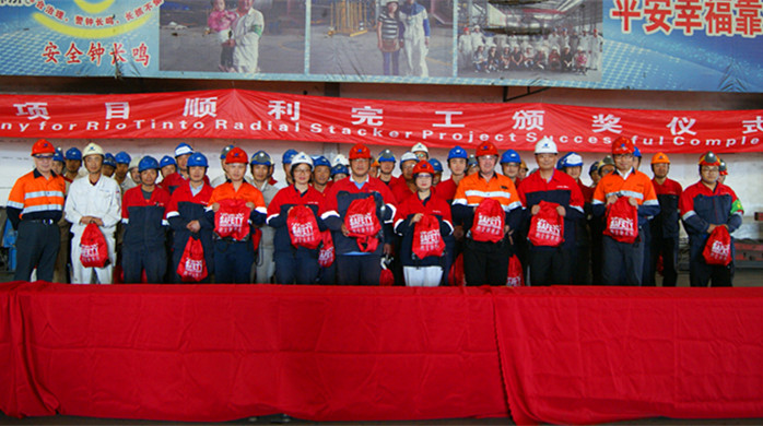 日前,力拓礦業中國區采購總經理Greg Courts先生率力拓品質及采購團隊蒞臨潤邦重機,就公司為力拓打造的“杰馬/GENMA”環形堆料機項目表示謝意,并贈送了禮物給項目團隊的每位成員。