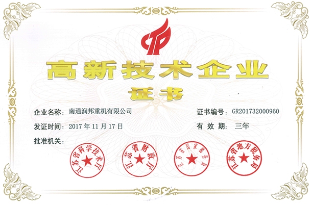 近日,子公司潤邦重機、綠威環保順利通過高新技術企業審核認證,再次獲得由江蘇省科學技術廳、江蘇省財政廳、江蘇省國家稅務局、江蘇省地方稅務局共同批準頒發的高新技術企業證書。潤邦重機、綠威環保分別于2011年、2014年獲得高新技術企...