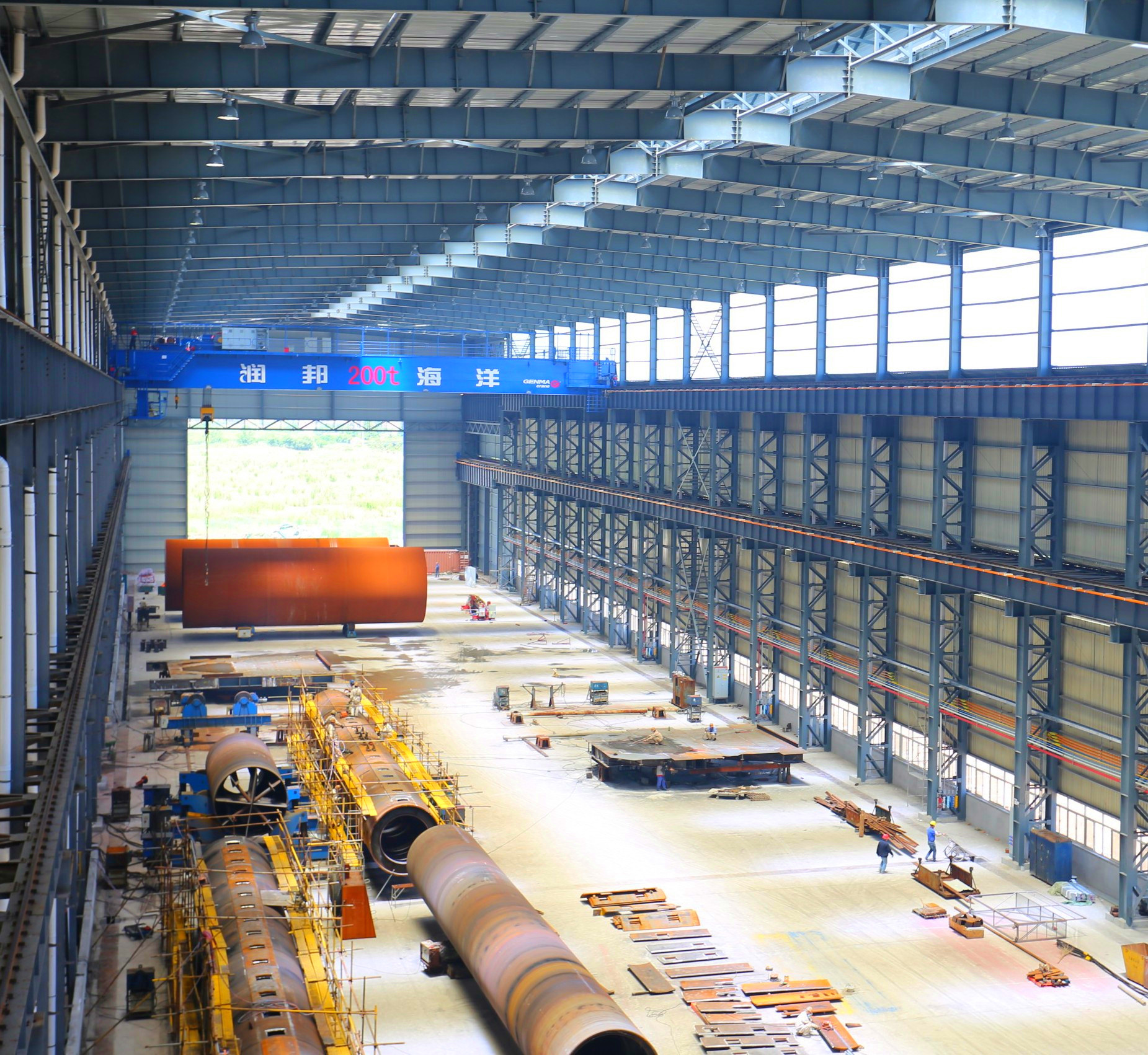 為了滿足市場需求,潤邦海洋在原有聯合車間基礎上斥責擴建,實施聯合車間第二期工程。在公司領導的重視和指導下,公司克服了鋼材、水泥等主材短缺、漲價及春節用工、冬季施工等困難