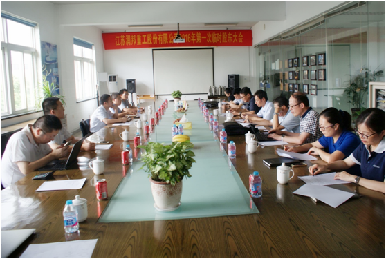 2016年8月26日,江蘇潤邦重工股份有限公司召開了2016年第一次臨時股東大會,會議由公司董事長吳建先生主持。